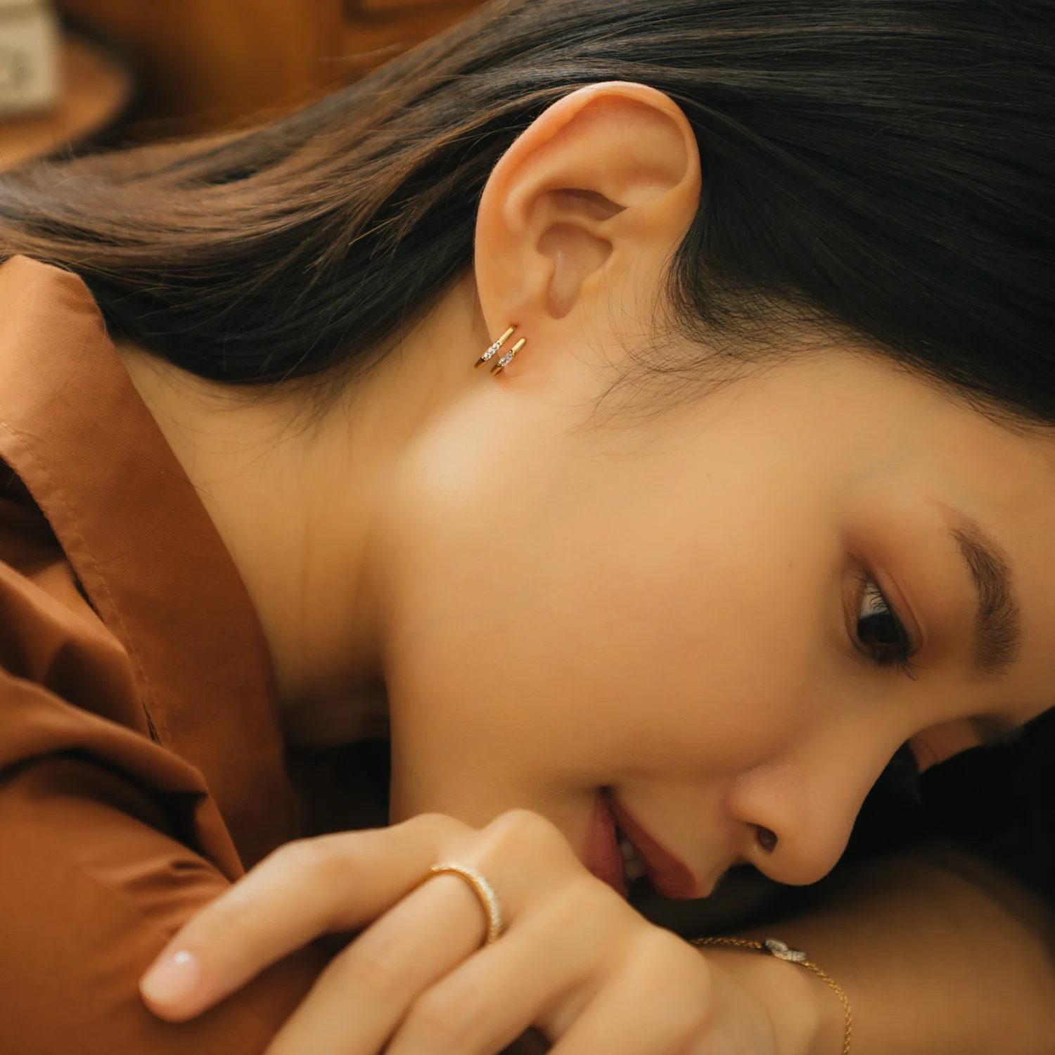 Double the huggies, double the fun! Add drama to your ear stack without the commitment with Reagan’s versatile set that hugs perfectly around your ears.