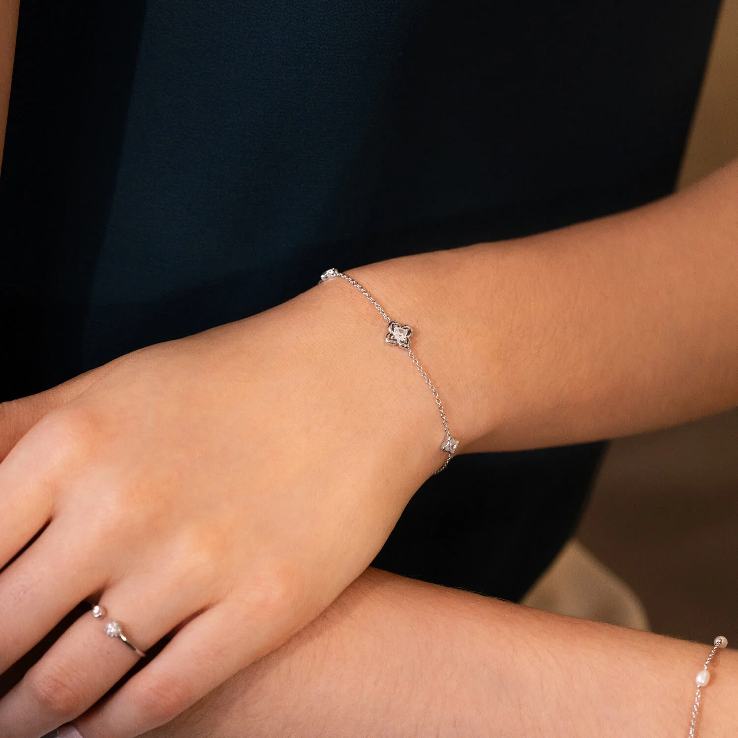 Materials: Rhodium-plated recycled 925 silver, cubic zirconia stones